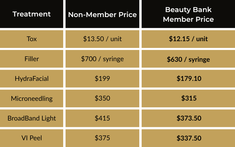 As a Beauty Bank Member earn 2% back in loyalty points on every dollar spent above your beauty bank on injectable and skin services.